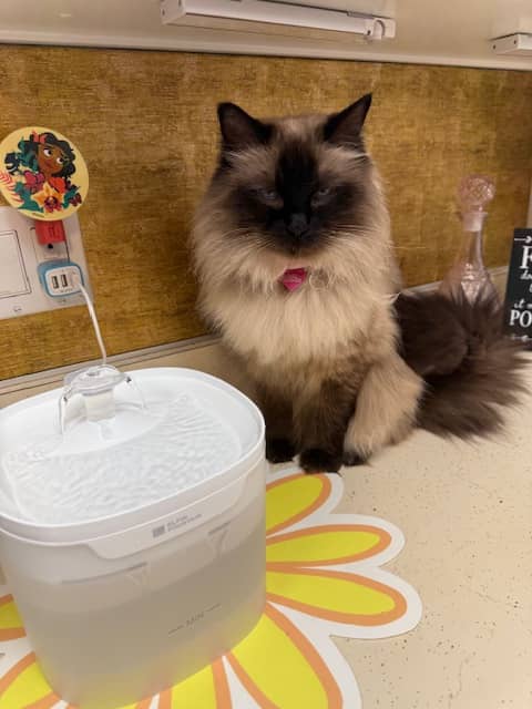 Why I love it: You can see exactly how much water is left, it runs continuously, and it is incredibly easy to disassemble and clean. You can check out my full video review and cleaning tutorial right here. Success Story: Teaching Anell to DrinkJackie recently updated us on how her cats are liking the new setup. While some cats take to a new fountain immediately, others—like her girl Anell—need a little "human" encouragement! "I love it, but Anell was not thrilled at first! She just sat next to it. I actually started 'drinking' from it myself, like a cat would, and she finally got it and started drinking! > This morning I found Anell with spots of water all over her face, so happy to be drinking from it. I love that you can see the water level. I’m sure they both will love it over time!" — Jackie